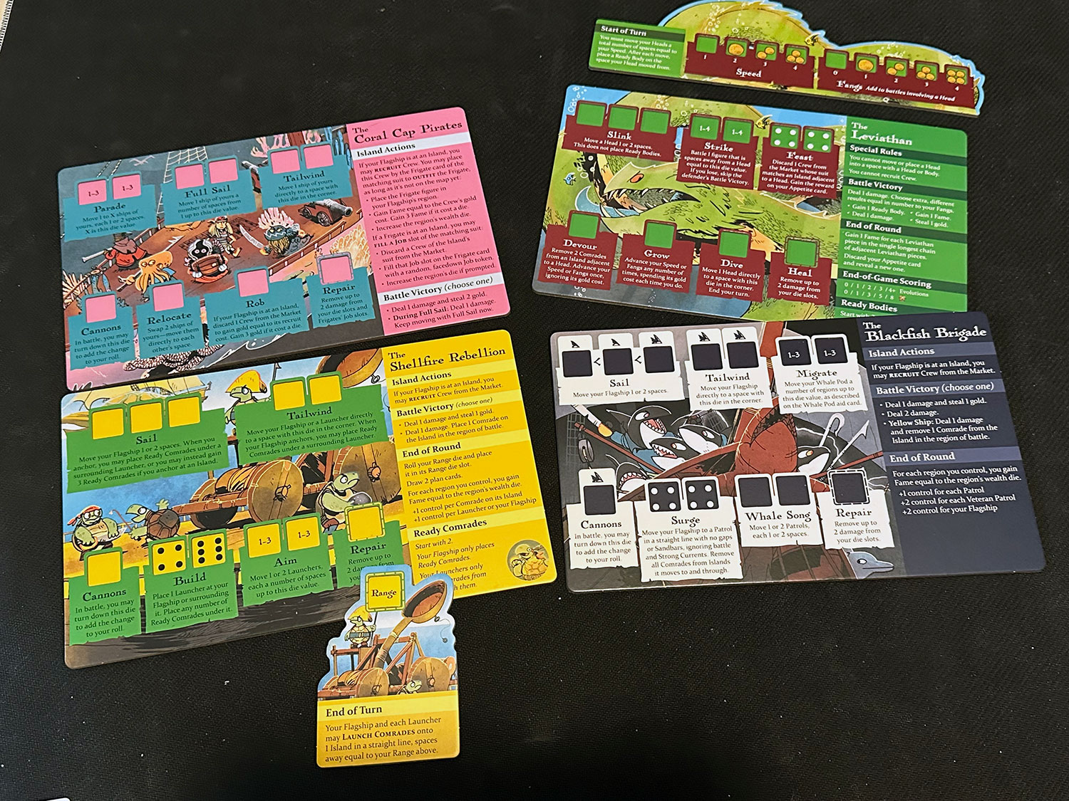 Overall, I find that all four of the new factions add something to the game. The Leviathan and the Coral Cap Pirates are really entirely new play styles and let the 3rd and 4th players feel like they are doing something all their own. Even just using the Smugglers and one of the two helps the games asymmetry, as with 4 players before, using two Smugglers was definitely a hit against the game. As for the Shellfire Rebellion and Blackfish Brigade, they have a same-but-different feel to them.