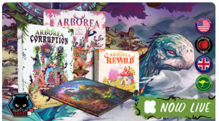 Featuring the Arborea KS Reprint, Corruption Expansion, Rewild Standalone Game, and Deluxe Artbook to the hit euro-game: Arborea.
