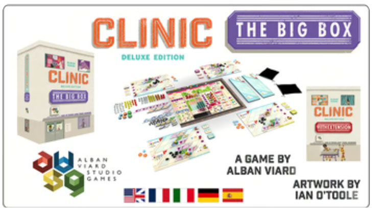 Clinic Deluxe: the Big box fits all the components from the base game to the 911th expansion. You wanted it, it is now on KS for you!