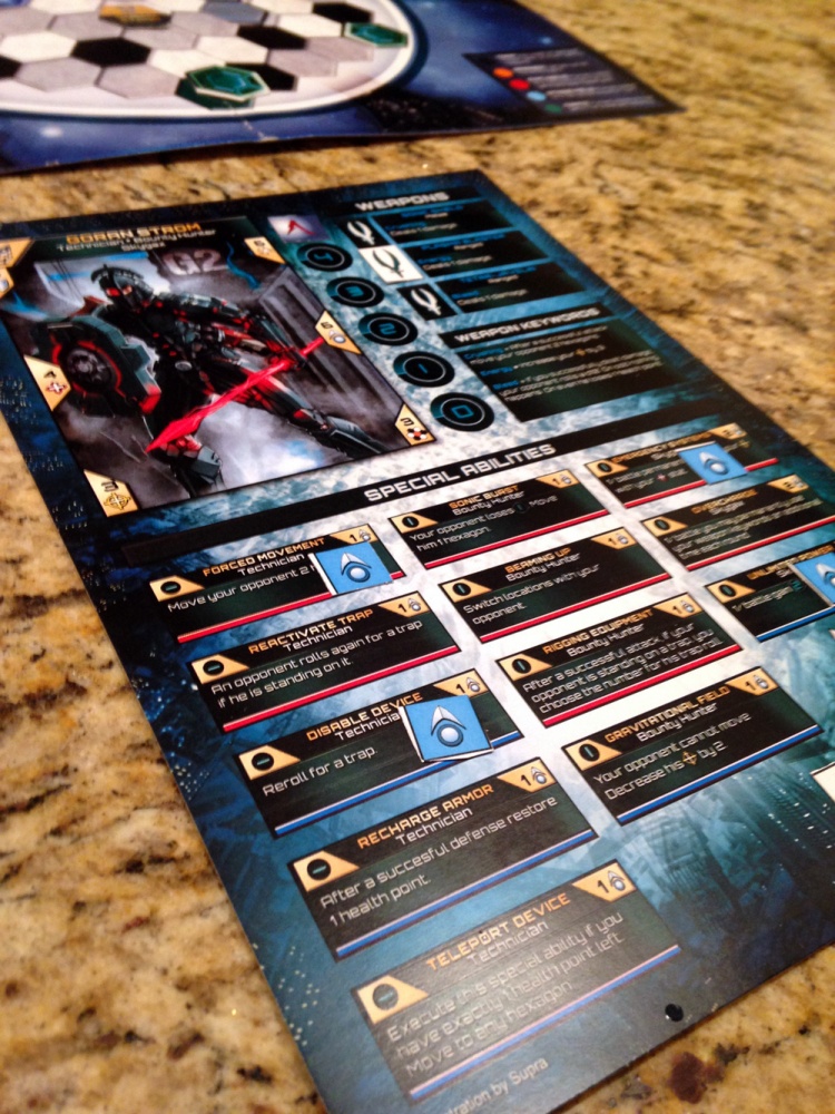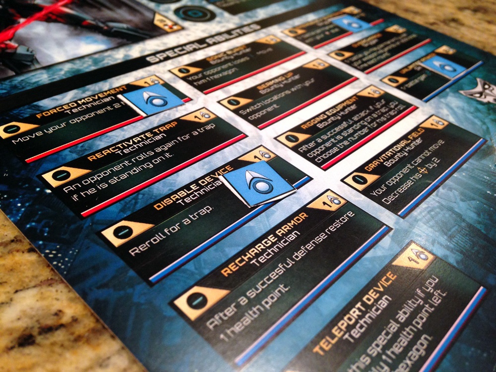 Galactic Arena isn’t a hard game by any stretch. Most of our early games ended up being me and my opponent wailing on each other in the center of the arena. It wasn’t until we got a good feel for the game that we figured out that the key to being successful (and having fun) in Galactic Arena is through the use of the special abilities.