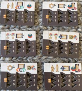 Besides the points you earn from your launches and itineraries, there are also three scoring assessments through the game, dividing the game into thirds. Every time a player launches a ship or meets the criteria for one of the game’s three achievements, a cube gets placed onto the track that measures the end of each of these three eras. When the first section fills up, players score based on how well they are meeting those achievements goals and launching ships. The same thing happens when the second section fills up, based only on the cubes placed during the middle third of the game. When the third section fills up, the end of the game is triggered and players will get one or two more turns before the final scoring occurs, based on cubes placed during the last third of the game.