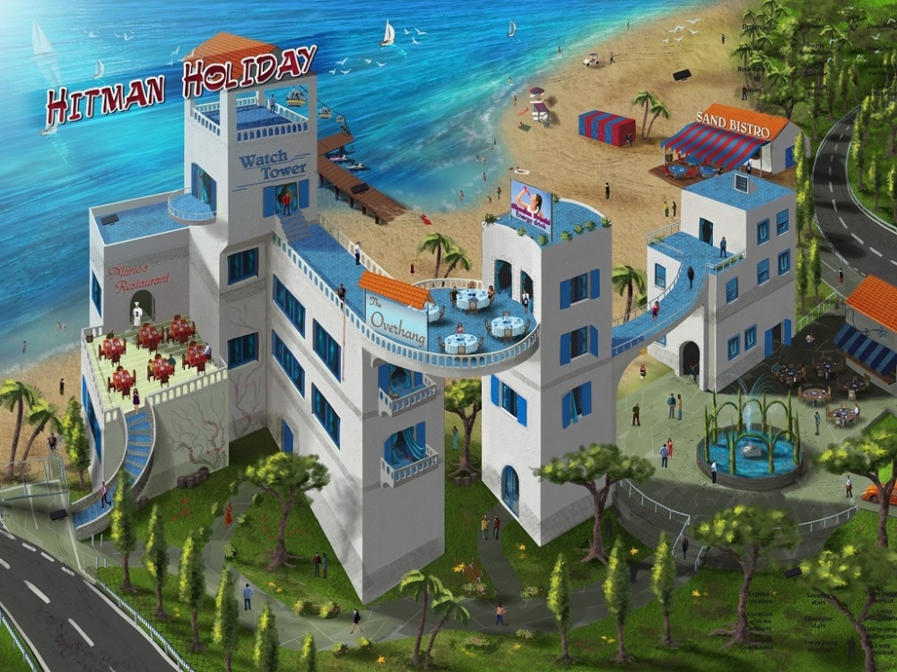 What first drew me to this game was the prospect of pitting assassin vs. assassin. It was a concept that I hadn’t experienced and thought the vacation theme would be interesting. The use of the resort hotel breathes life into the game by allowing for some creative ways to kill your target. If it was just shooting or stabbing it would get quite stale, however, having the opportunity to cut the elevator cables or run someone over with a jet ski brings variety to what you can do.