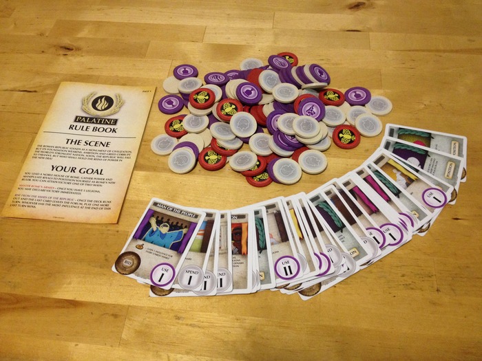 For some reason I really enjoy ancient Rome as a theme for a tabletop game. From the Days of Wonder board game Colosseum to the fantastic card game Glory to Rome, I’ve enjoyed many experiences in this ancient city. Our newest Kickstarter of the Week, Palatine, seeks to bring the intrigue and power plays from this ancient era to your tabletop. Palatine is a social strategy game where players lead a noble family trying to amass enough power to take over the city. For the game play, this game for 2-4 players using bidding and card play as its central mechanics.