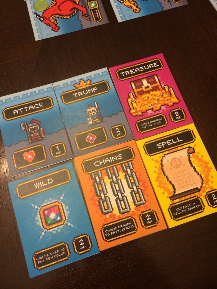 Since players can only attack dragons once they are ‘whole,’ there were portions of games where no attacks could be taken since there were no whole dragons. All players were flipping over Dragon cards, and no whole dragons were being completed. This created quite a bit of frustration due to repetitiveness of the game. The Summoner cards worked to alleviate this during one of our games, but the other Summoner card was literally at the bottom of the deck. Rules tweaks for deck stacking (a la Pandemic) or increasing the number of Summoner cards could be a good fix.