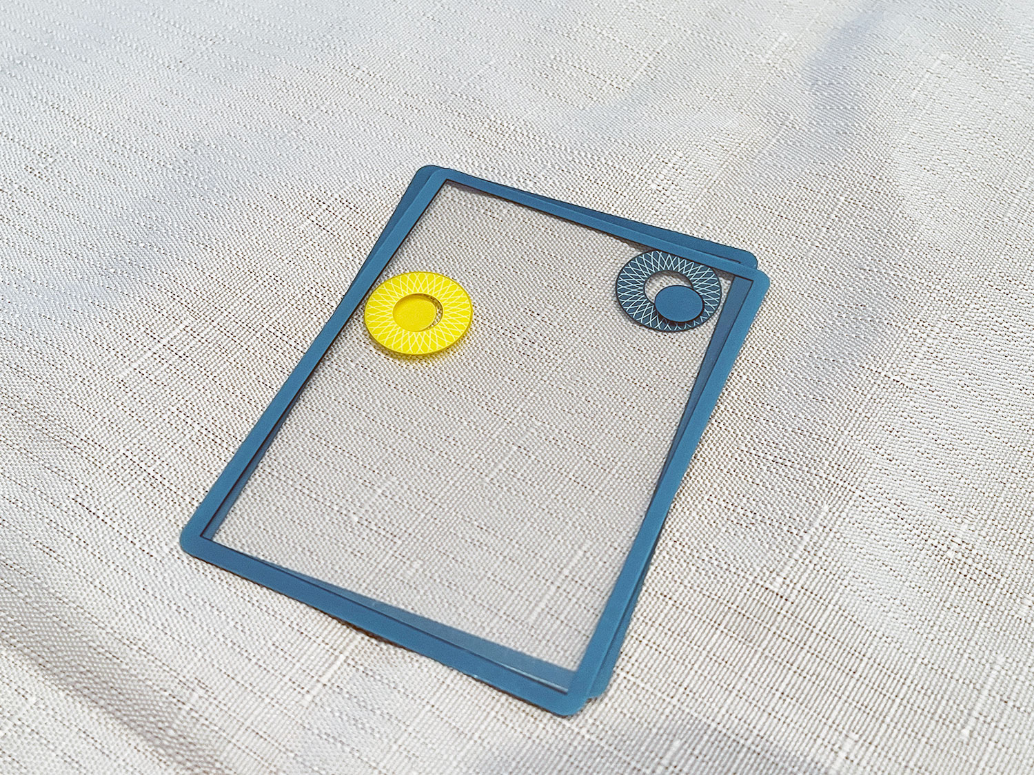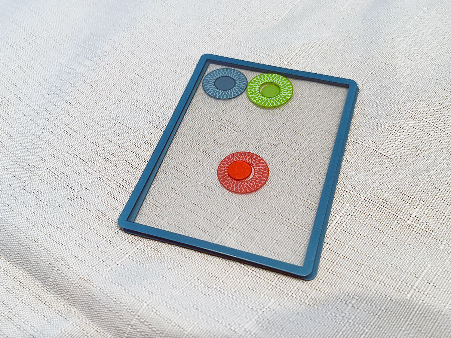 Swish is made up of 60 transparent cards, each of which has a colored dot and a colored ring (a ball and a hoop, if you will). The cards are dealt out into a 4×4 grid and then each player tries to find a match.